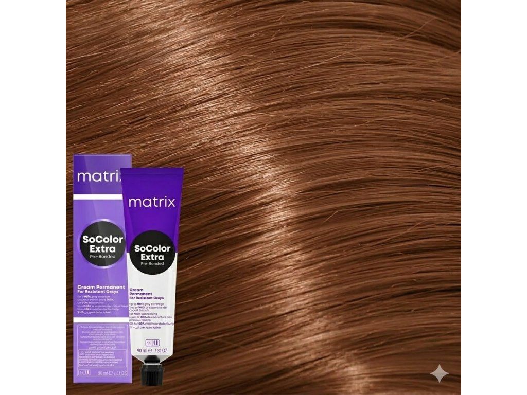 Matrix SoColorExtra je profesionální permanentní barva na vlasy, která zajišťuje maximální krytí šedin, dlouhotrvající odstín a intenzivní lesk. Varianta 508 BC / 8.54 nabízí středně měděný blond s červenými a zlatými odlesky (Blonde Copper/Red), ideální pro vytvoření živého, teplého a moderního vzhledu vlasů.
