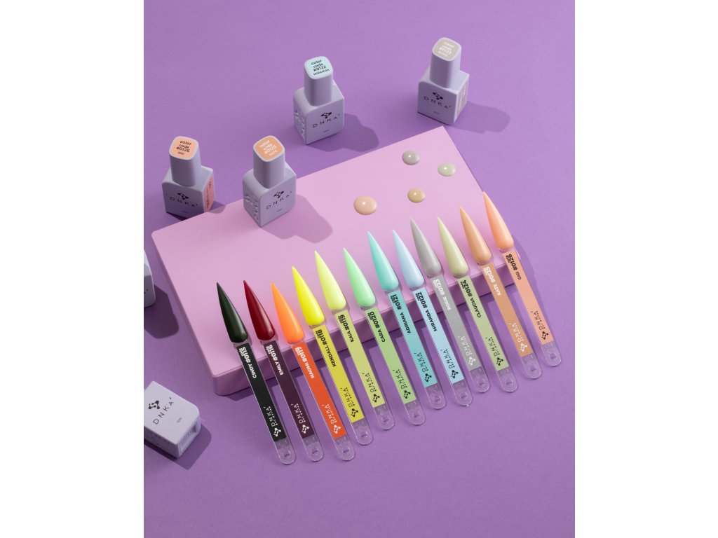 DNKa‘ Gel Polish Color je kolekce gelových laků v hlubokých odstínech s efektem samovyrovnávání, které zajišťují snadnou aplikaci a skvělé polymerizace. Laky jsou odolné vůči vyblednutí, nepraskají při nošení a lze je snadno rozpustit. Gel laky této kolekce jsou aromatizované a kompatibilní s produkty jiných značek, což umožňuje snadné kombinace. Kolekce je dostupná v módních odstínech a efektech ve flakonech s povrchem Soft Touch a barevným značením.