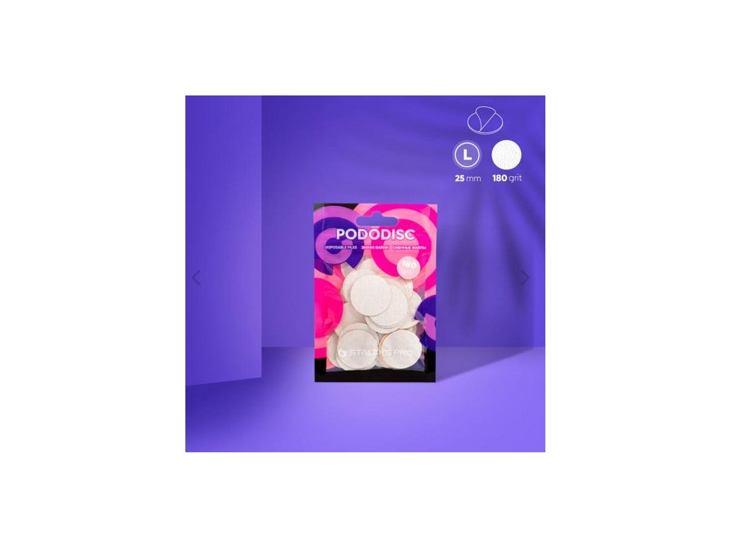 PODODISC L EXPERT 180 grit jsou jednorázové brusné kotouče určené pro efektivní odstranění zrohovatělé pokožky při pedikúře. Díky vyšší zrnitosti jsou ideální pro hrubší fázi opracování. Bílá barva působí čistě a profesionálně, a odolnost vůči vlhkosti zajišťuje stabilní výkon i při použití pečujících přípravků.
