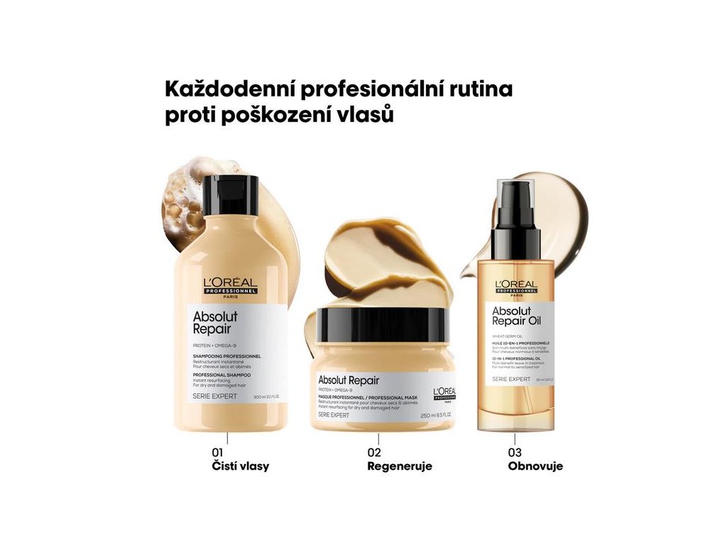 Pro maximální účinek kombinujte s maskou a péčí z řady L'Oréal Professionnel Serie Expert Absolut Repair.