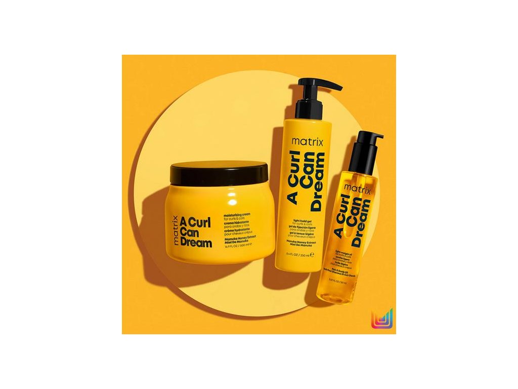 Zvýrazněte tvar svých vlnitých a kudrnatých vlasů pomocí hydratačního stylingového krému Matrix A Curl Can Dream Moisturizing Cream! Tento vyjímečný bezoplachový krém vlasové vlákno hydratuje, definuje a umožňuje vytvářet styling bez efektu slepení či ztuhnutí. Výtažek z manukového medu díky svému přirozeně zvlhčujícímu účinku pak dodává ještě více vlhkosti bez nežádoucího zatížení. Krém neobsahuje silikony, parabeny, minerální oleje, petrolatum ani parafíny.