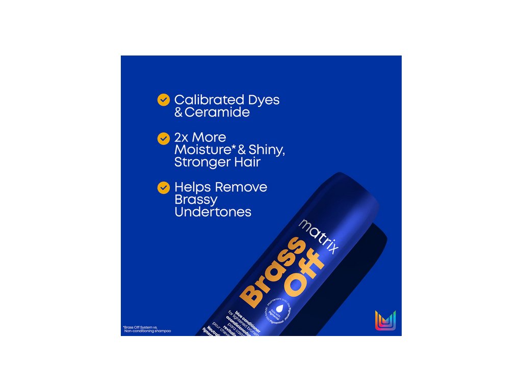 Nežádoucí oranžové a měděné tóny v blond nebo odbarvených vlasech? Řekněte jim sbohem. Matrix Brass Off Pigmented Conditioner vlasy nejen tónuje do chladnějších odstínů, ale zároveň je hluboce hydratuje a zanechává je hebké, lesklé a snadno upravitelné. Ideální péče pro zesvětlené i přírodní blond vlasy, které ztrácí svůj studený nádech.