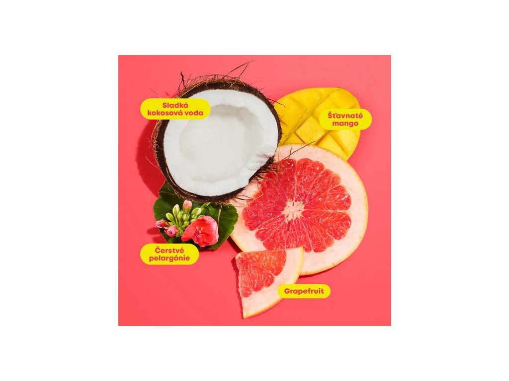 Svěží vůně s tóny grepu, manga, geránia a kokosové vody