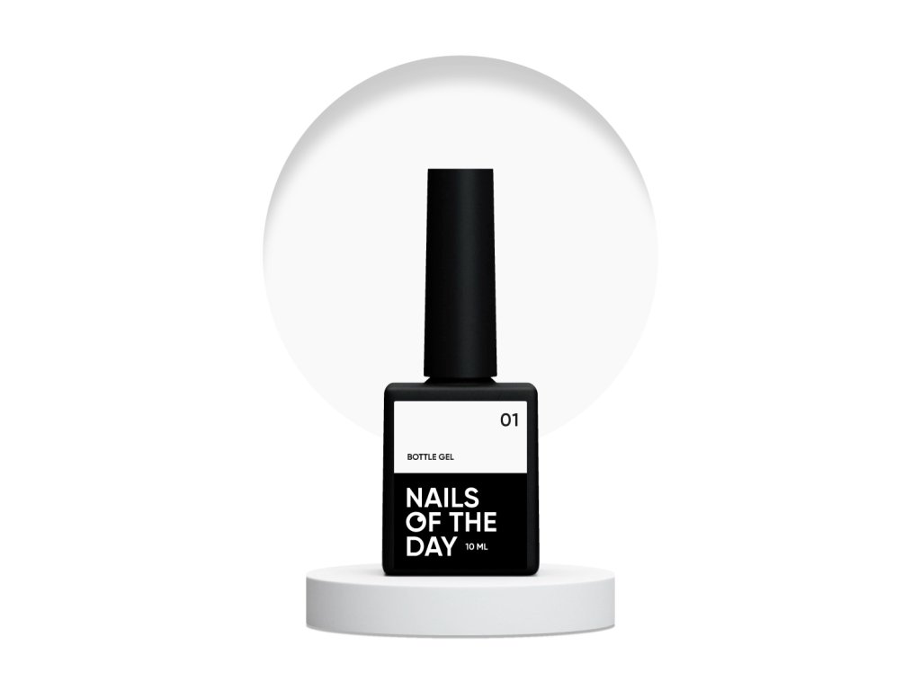 NAILSOFTHEDAY Bottle Gel 01 je bílý, extra pevný gel o objemu 10 ml, určený pro posílení a modelaci nehtů. Díky samovyrovnávací struktuře se snadno nanáší a vytváří pevný a odolný povrch proti mechanickému poškození. Gel neobsahuje toxické látky, má střední konzistenci a netvrdne na vzduchu.