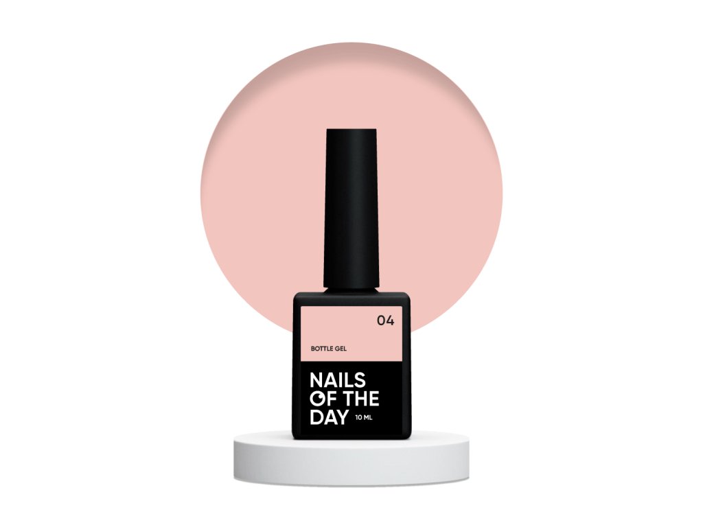 NAILSOFTHEDAY Bottle Gel 04 je mléčně béžový, extra pevný gel o objemu 10 ml, navržený pro posílení a modelaci nehtů. Díky samovyrovnávací konzistenci se snadno aplikuje a vytváří odolný povrch vůči mechanickému poškození.