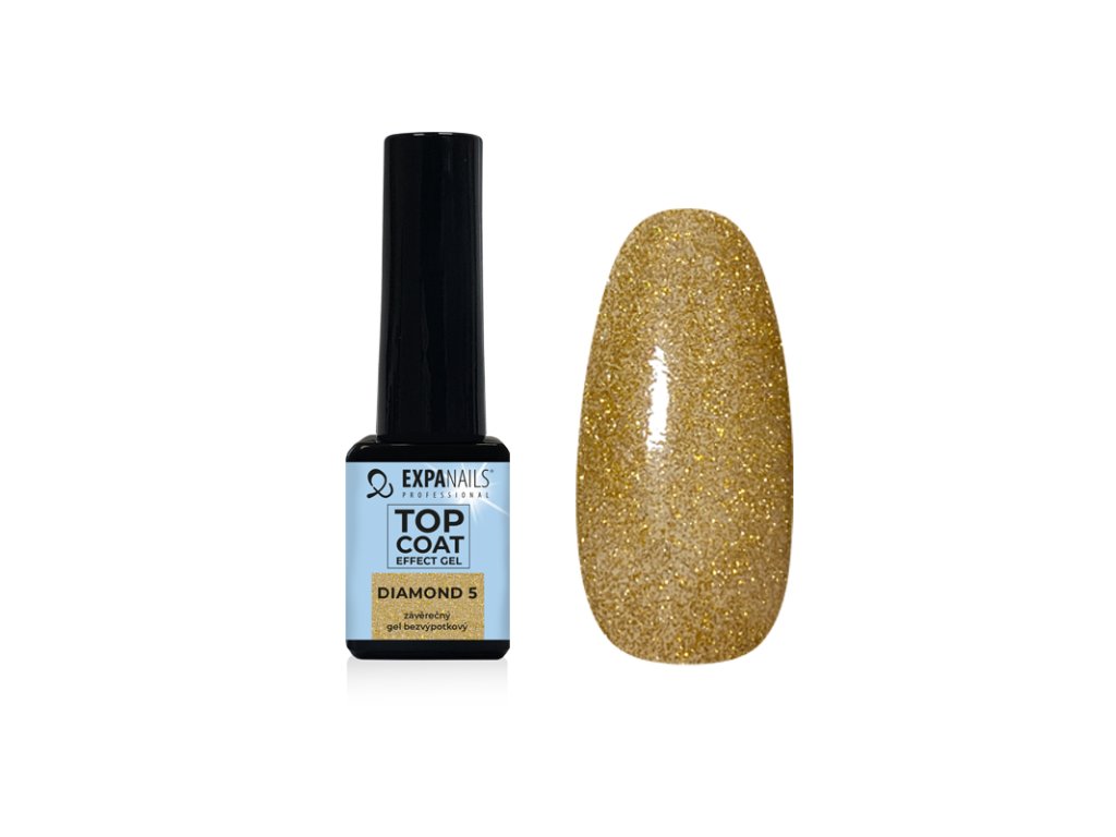 Závěrečný bezvýpotkový lesk, čirý se zlatým třpytem, obsahuje reflexní prvky, které dodají nehtům efektový a pružný lesk. Oživí každou barvu a vytvoří na povrchu gelu nádherný třpytivý efekt.